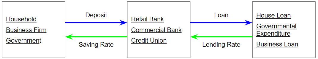 The difference between the interest rate between Loan IR and Savings IR would be the net Interest Income for the bank. (IR = Interest Rate)